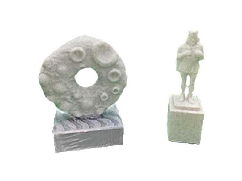 La maqueta de un hórreo impresa en 3d por piezas combinando los materiales en filamento de granito, madera y color terracota en el tejado.